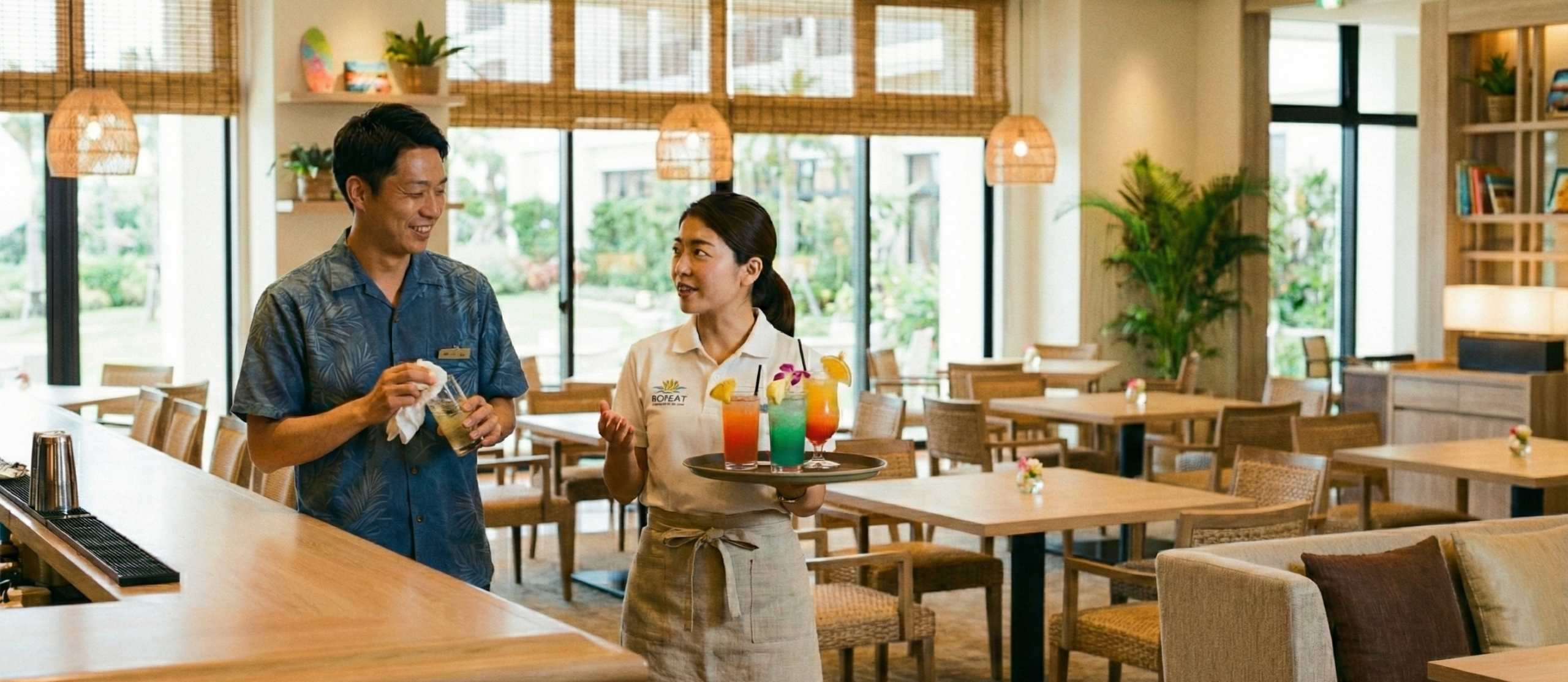 <tdフロント・ベル・売店ホテルの顔として活躍。語学力を活かせる場面も。
